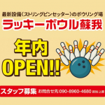 続きを読むフェスティバルウォーク蘇我2階に最新設備<ストリングピンセッター>のボウリング場が近日オープンします。どうぞお楽しみに!! スタッフ募集(お問合せ先:090-8960-4680 担当:上原)